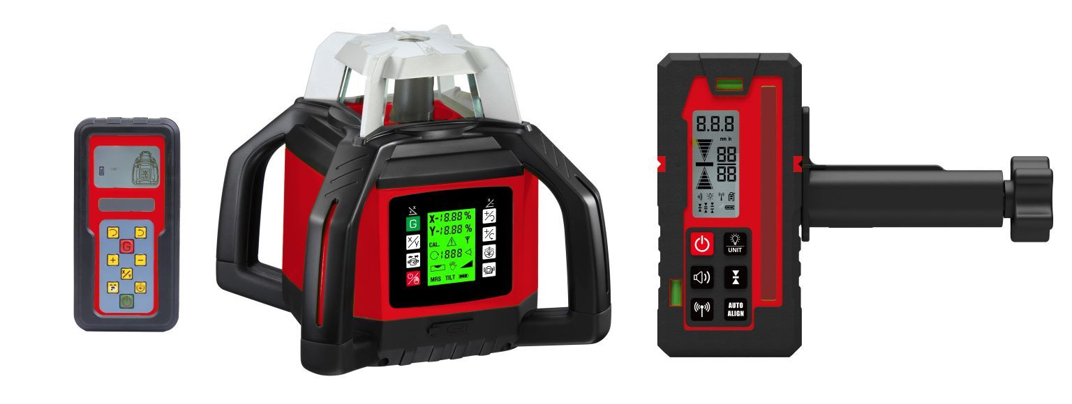 GeoPower PRO 600GR-RA pyörivän säteen laser soveltuu mm vaaka-, pysty- sekä kallistusmittauksiin. RA mallissa ”AutoAlign” toiminto, jolla voidaan vastaanottimen avulla ns ”siepata” säde ja laite tekee suoraan kallistuksen asetettuun korkoon. Kallistus näkyy suoraan näytöltä.