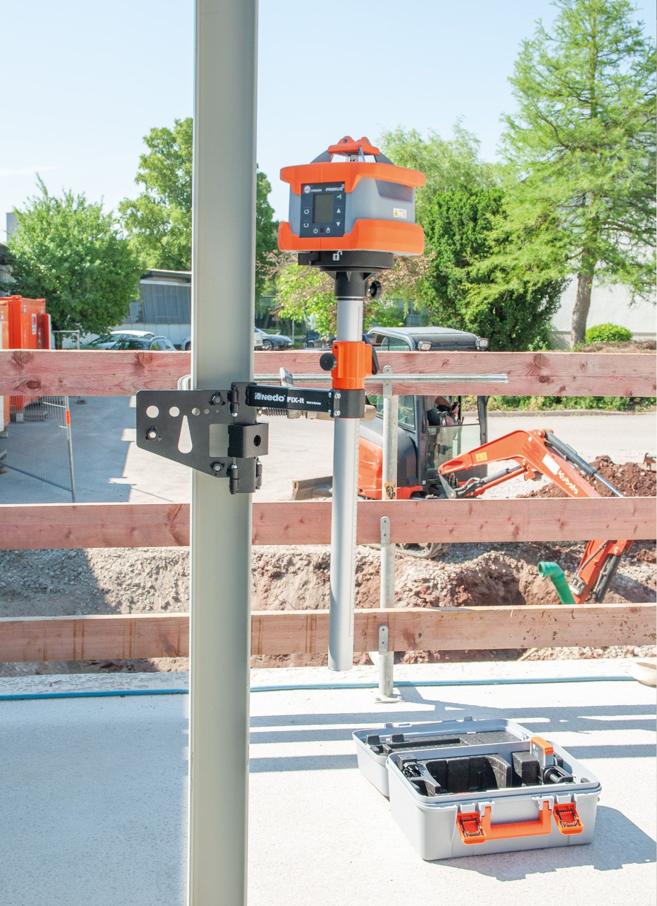 Monipuolinen ja tukeva kiinnitysteline rakennuslaserille