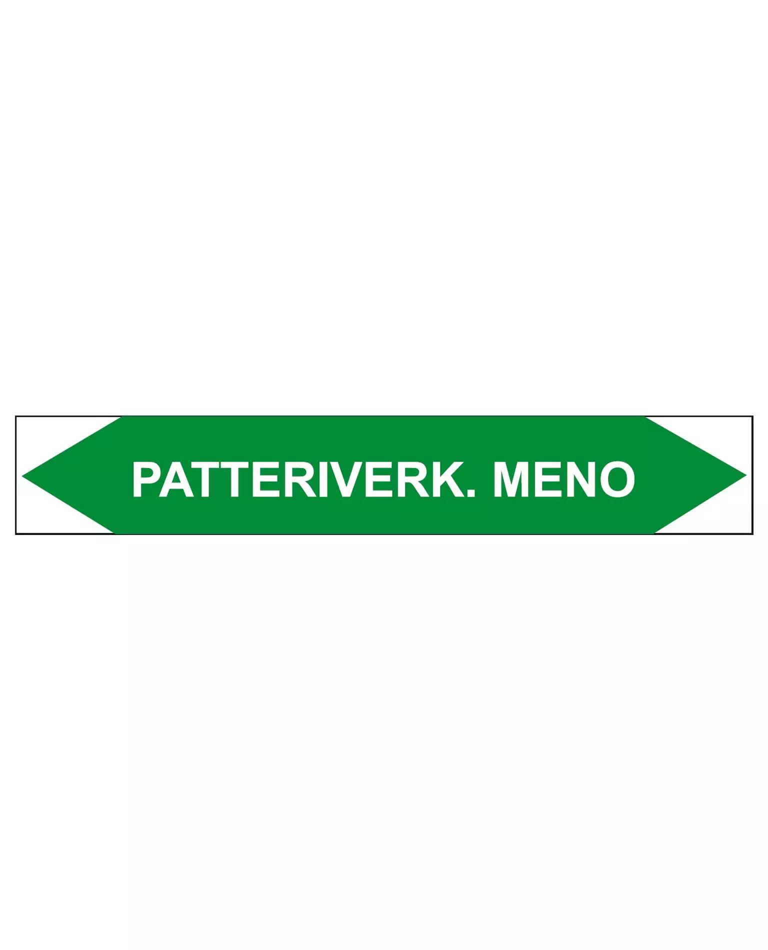 - Tuotepolku Etusivu Kyltit ja opasteetMuut kyltitPutkistomerkintä Patteriverk. Meno, 160x25 mm