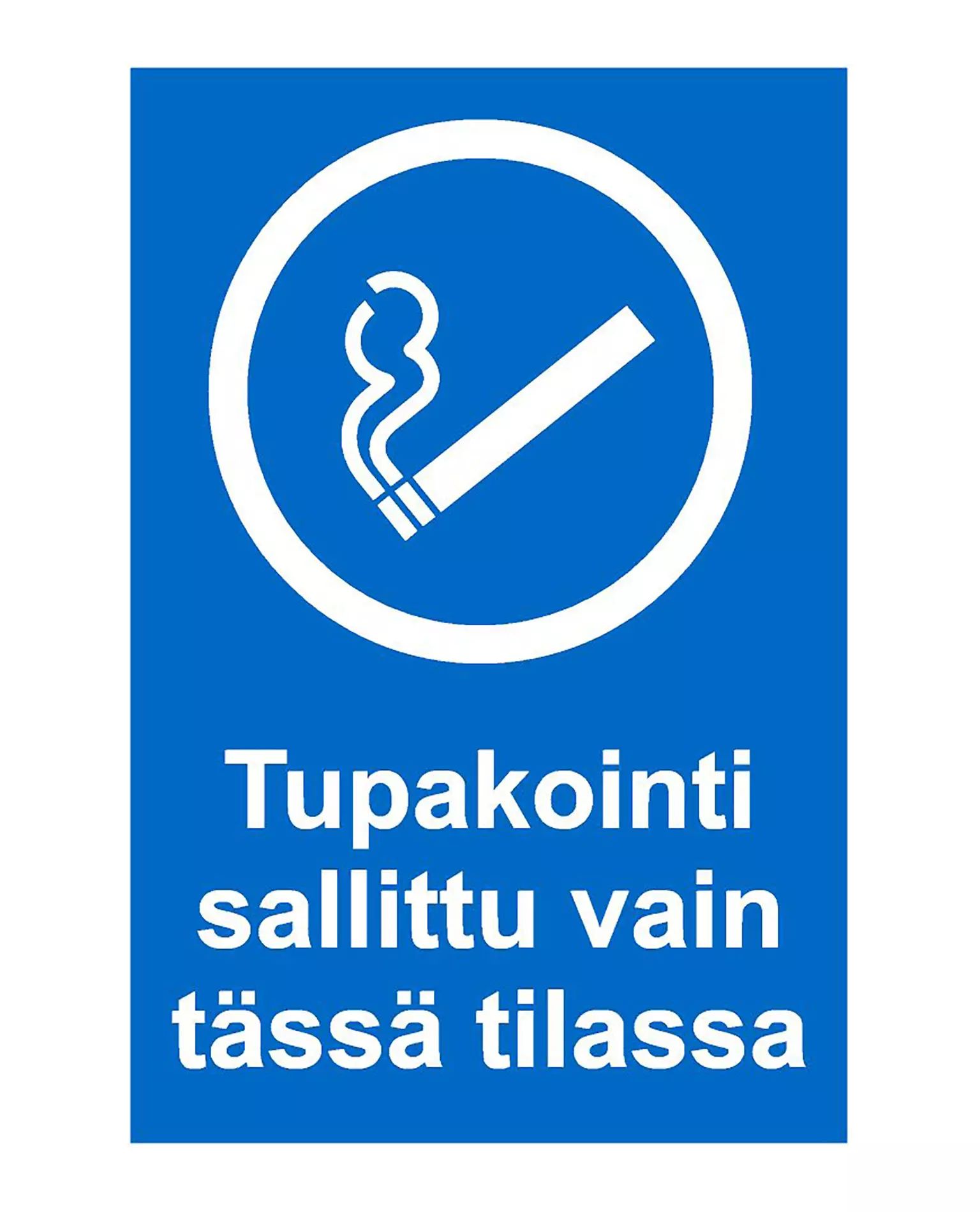 - Tuotepolku Etusivu Kyltit ja opasteetMuut kyltitKiinteistökyltit Tupakointi sallittu vain tässä tilassa, Muovi 1mm, 200x300 mm